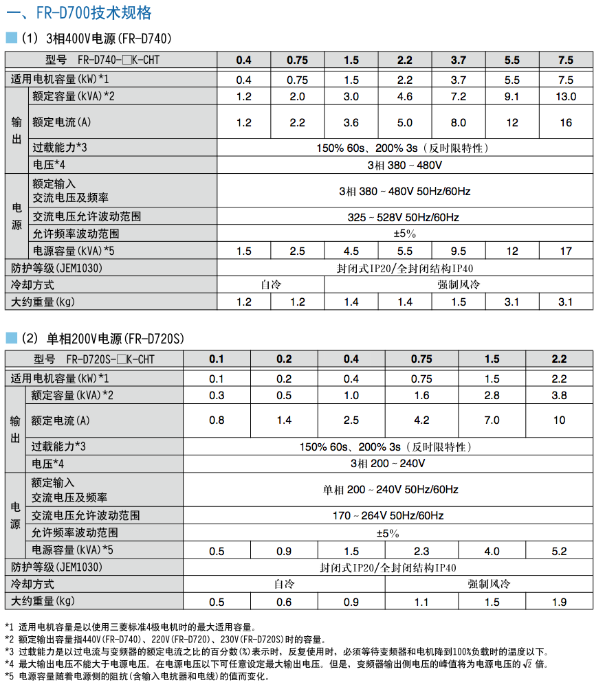 三菱D700系列變頻器
